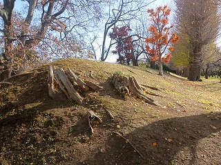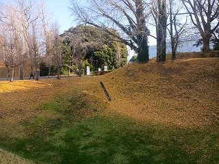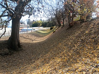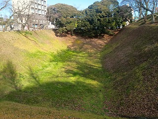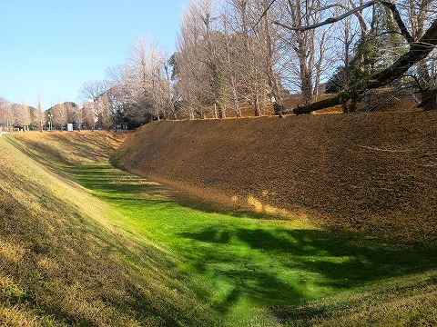 二ノ丸と本丸を分ける堀切の巨大さはおそらく日本一の規模ではないかと思う。堀底を水郡線が通っているが、ほとんどの人はこれが城の遺構とは思わずに橋を渡っていると思う。久しぶりの本丸の土塁と薬医門はまるで自分に再会を語りかけているようだった。ひとかけらの石垣もなく土塁と堀切だけで構築された水戸城は、関東の城らしさを存分に伝えてくれる。 |