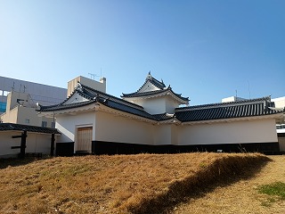 前回は三ノ丸も一部して見ておらず、水戸城の代名詞とも言える広大な空堀を目の当たりにしたときは溜め息が出るようだった。それは石垣がなくとも要害堅固な城が築ける見本のような遺構で、日本屈指の規模を誇る箱堀と言えるであろう。弘道館を通り抜けて二ノ丸へ向かうと巨大な大手門が待ち構える。今では周辺の景色とよく馴染み風合いさせも感じさせている。袋小路のような細い道を進むと純白に光り輝く隅櫓が出迎えてくれるが、これもまた水戸城にアクセントを与えてくれる復元建造物だった。