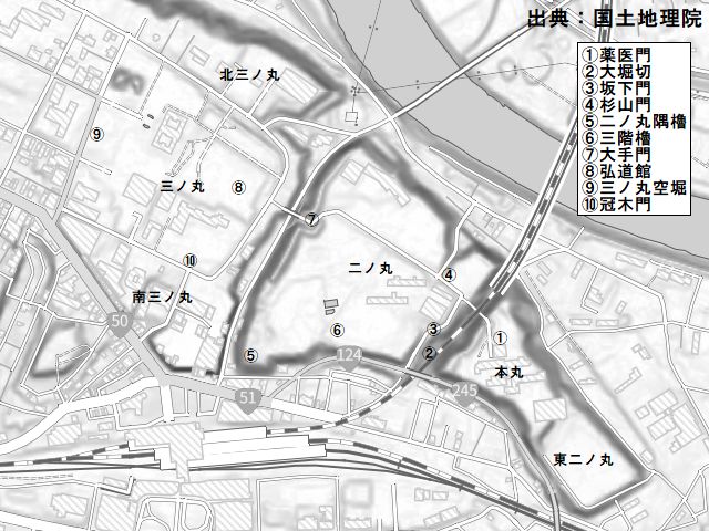 長い歴史を誇るわりにはずいぶんとあっさりした城である。名古屋城や和歌山城のように豪壮な天守は上がらず、簡素な御三階櫓がその代用となっていたが、この櫓も他の御三家の居城と同じく太平洋戦争で焼失したため、城跡を歩いてもそれほど強い印象は受けない。土で成り立つ関東の城と言ってしまえばそれまでだが、あまりにも質朴とした雰囲気に改めて驚いたものだった。しかし防御力は高く千波湖を天然の堀とした縄張は堅固な構えだと思う。