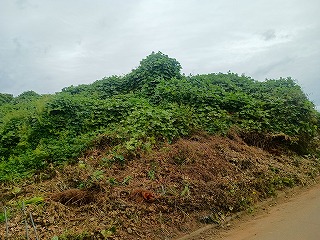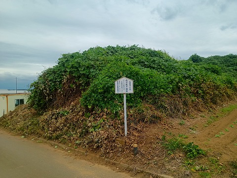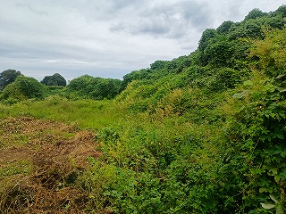 土塁に近づいて案内板に目を通していると、目の前の畑で農作業をしていた年配の女性に話しかけられた。山川綾戸城の土塁を見学に来たことを伝えると、農作業の手を休めてにっこりとしながら「これが南のほうまであったんだよ」と教えてくれた。古い航空写真を見てもその様子を窺い知ることはできないが、おそらくこの女性の親や祖父の時代から受け継がれてきた話なのだろう。こうして土地を守ってくれる人たちが同時に城跡を守ってくれていることを実感させられた。 |