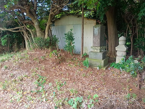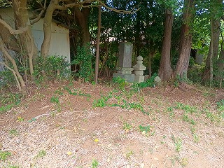 案内板を見る限り3つの曲輪で成り立つ城だったことがわかるが、曲輪の形状はもうわかりづらくなっている。また縄張り図から外れた場所にも空堀が見られることから、台地の全体が城域と考えて良いと思う。主郭には案内板が設置され、土塁の傍らに赤松氏の五輪塔が残るが、和歌城のもっとも明瞭な遺構である空堀を撮影し忘れたので、グーグルマップから拝借して掲載させてもらった。 |