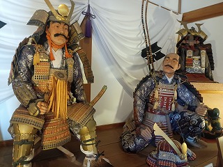 最初に復元された武田館を訪れた。まさかこんなに狭いわけはないだろうが、屋敷門から厩が見えるあたりは良い雰囲気である。主屋には展示物が飾られ、武田義清と清光父子の等身大の人形が展示されている。無料なのはとてもありがたく、開館日を選んで良かったと思う。
