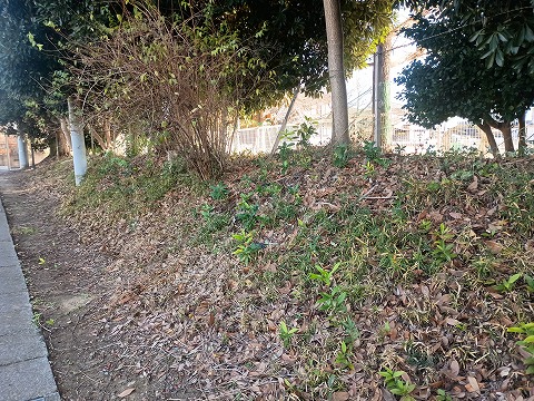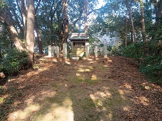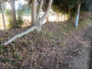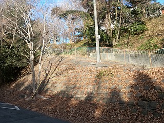 校庭では2人の児童が遊んでいるだけだったが、中に立ち入ることは遠慮して再び堀跡の坂道を下り、主郭がある台地の裾を歩いた。しばらく歩くと小学校へ通じる坂道があるが、ここが搦手口ということである。さらに歩くと鳥居と石段があるので登ってみたが、小さな富士神社が土塁の上に祀られている。この土塁は古墳ということだが、主郭の物見台ともされている遺構である。台地縁にも土塁が残るが、これが勝倉城の遺構のすべてということになる。事前に得ていた知見通りの遺構だったが、探索する時間はとても楽しかった。 |