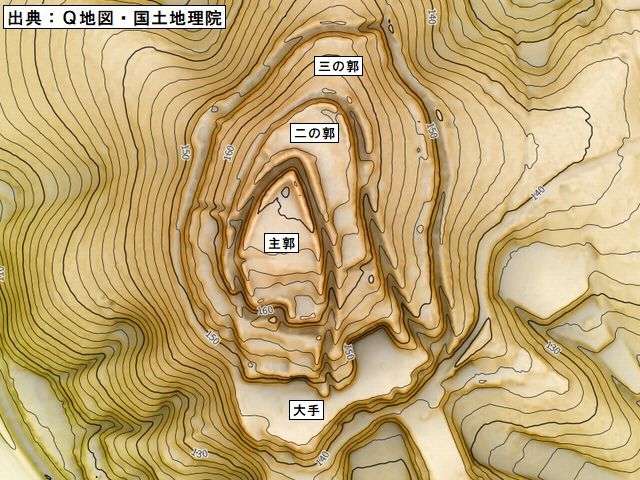 真岡鉄道の市塙駅から北へ40分程度歩くと観音山があり、山頂から南に向かって村上城の遺構が広がっている。付近は梅の名所として無料駐車場や遊歩道が整備され、山肌には村上城跡の大きな看板があるのですぐに場所はわかった。歴史はあまり明確ではなく益子氏の一族村上氏が築いたということしかわからない。中心の主郭を包み込むようにして二の郭と三の郭が備えられており、北へ向かって錐を打ち込むようなかたちをしている。それは明らかに那須氏に対する防御を意識したものだろう。