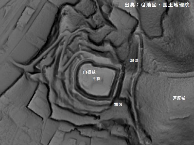 | 山根城は建久年間(1190〜99)に那須為隆が千本城の支城として築いたという。あくまでも伝承であり、その時代の山根城は今に見るような螺旋状の山城ではなかっただろう。戦国時代には千本氏の重臣が山根城に隣接する芦原城を居城としていたが、天正13年(1585)に烏山城主那須資晴によって千本資俊は謀殺され、山根城と芦原城も那須氏の軍勢に攻め落とされたという。 |