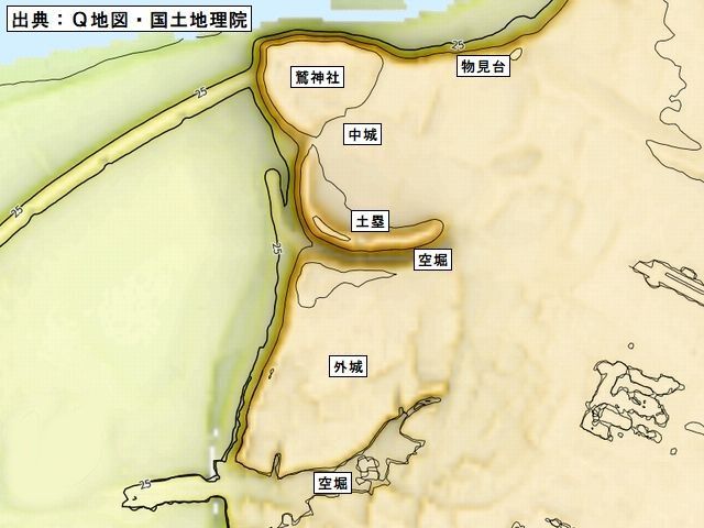 鷲城は小山義政の乱で焼け落ちたが、その後は祇園城の支城となり存続していたようである。今に見られるような巨大な空堀は戦国時代まで改修されたように思えるし、室町時代末期から戦国時代の半ばにかけて宇都宮氏と激しく争った時代までは第一線の城郭として使用されたと考えられる。 |