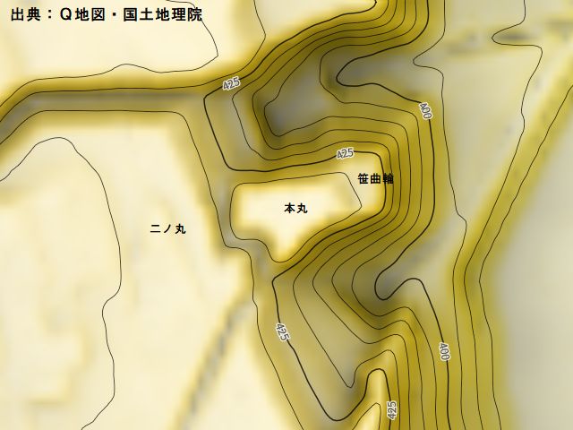 小川城は小さな城だが遺構は良く残っている。赤い幟が目立つので場所はすぐにわかった。城内を道路が貫通し二の丸は畑になっているが、本丸を中心にして深い空堀が廻らされている。旅先に到着して最初の城がこれぐらい充実していると嬉しいもので、鋭角に掘られた空堀は十分に見応えがあった。