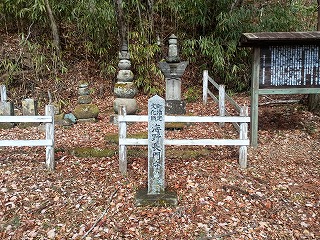 羽根尾城からは山を下れば羽尾氏の居館跡へと至るが、その後の行動を考えて車で麓まで移動した。羽尾館は広々とした草地となっており、一段と高まりを見せる台地上の平場に小さな社と海野長門守幸光の墓が建っている。