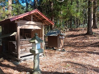 三の郭の西側には岩下城の最大の見どころと言える大堀切が存在し、急な斜面を這い上がると主郭がある。主郭には土塁が盛られているが、藪となって見づらいのが残念だった。主郭は二段で形成されており、さらに西へ下ると小さな神社が祀られている二の郭がある。その向こう側にも曲輪が連なるが、大手道から直結するのは二の郭ということになるのだろう。