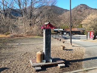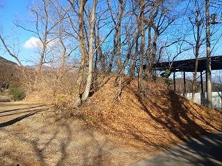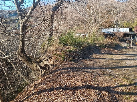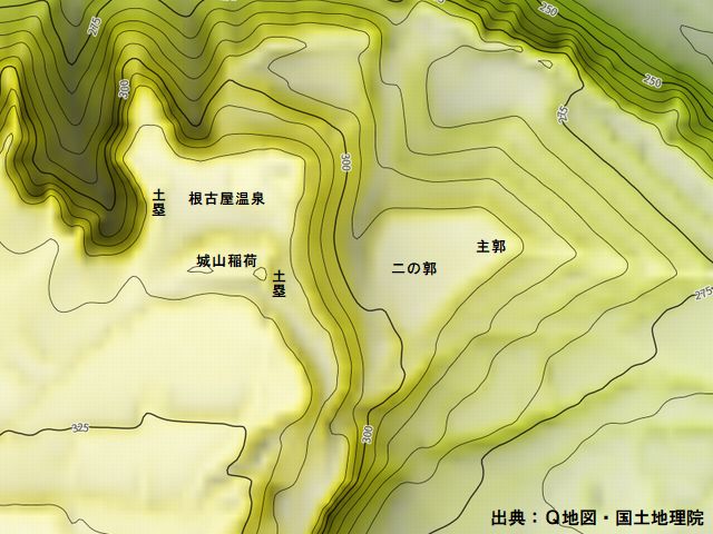 城址にはその名も根古屋温泉という温泉施設があるが、柏原城についての案内板などは設置されていなかった。城山稲荷は健在だったが、台地の端や城山稲荷の付近に土塁が残る程度で、他は温泉施設の建設で土地が均されてしまっているように思えた。それが間違いだったのは帰宅して数日後に柏原城の縄張り図を見てから気づいた。温泉施設も曲輪の一部ではあるようだが、柏原城の中心部はその東側にあった。城山稲荷から車両通行止めの道を歩いてはみたが、それらしい地形は見当たらず引き返してしまった。まだ遺構が残っているのかは不明だが、吾妻郡へ再訪する機会があれば確かめてみたい。 |