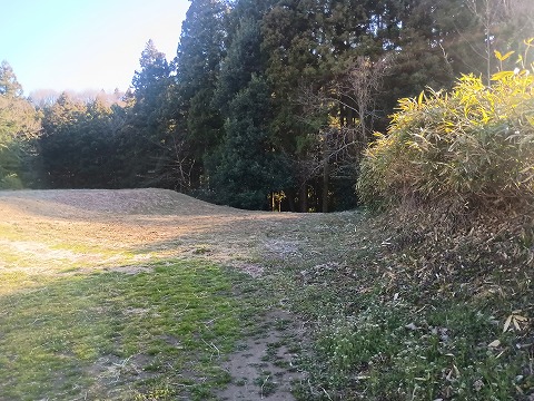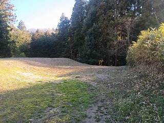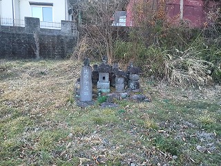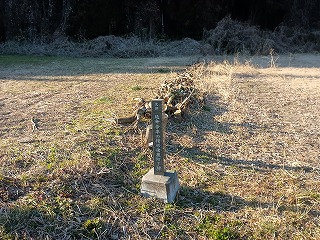 入沢城は市街地から遠く離れた榛名山から伸びる台地上にある。大半が農地として均されてしまい土塁は見られず、城址碑の傍らにはっきりと確認できる空堀を残すのみとなっていたが、ほとんど無名の城跡にこうして石碑が建てられているのはありがたい。城の遺構とはまったく関係ないが、獣害除けの垣根跡や延命寺という寺院跡を示すいろいろな石碑が建っていた。 |