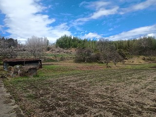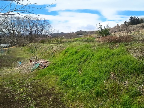 礼応寺城は秋間川に迫り出す台地上に展開していた城であるが、ここへ至るまでの農道は心細くなるような道だった。たどり着いてみるとそこには畑が広がるだけで、土塁もなければ空堀も見られない味気ない風景があった。よくよく見れば段差や切岸加工された地形もあり、何となく城跡らしさは感じられるが、これとても農地を造成したときの産物かもしれず、明確に遺構と言えるものは特に見当たらない。 |
