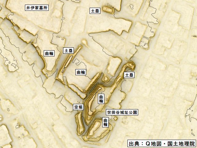 世田谷城は高級住宅地ということもあって周辺は住宅が建ち並んでいる。将軍に次ぐ家柄といっても現代人には関係なく、名門の居城も特に保全措置が取られることなく開発に晒され、南端の一部だけが城址公園として保存され土塁と空堀が残る程度となっている。これが地方であれば貴種尊重の気風が強いだろうから大切にされたのだろうが、昔の世田谷は田舎で旧家も少なく、他所から移住してくる人が多いため遠慮なく破壊された。