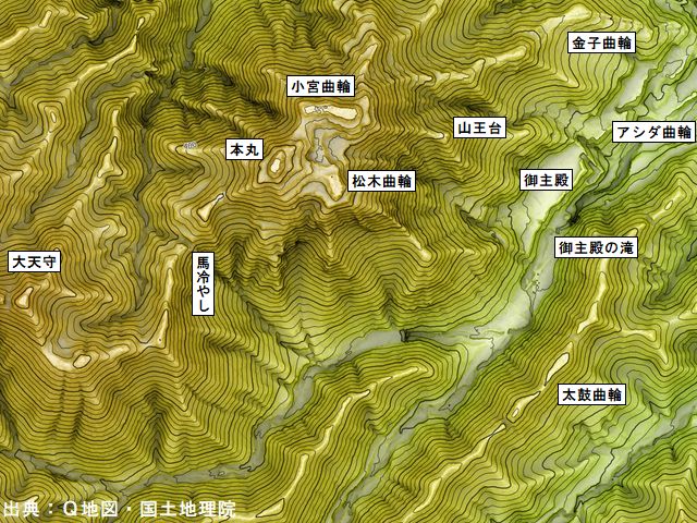 6度目の訪問は太鼓曲輪の尾根から登り、ひと通り曲輪と堀切を見て歩いたが、霊園入口のバス停付近から御主殿までの距離を歩くのでけっこう大変だった。いつもと違う道からなので新鮮味があったし、今まで見落としていた遺構を見られたのは嬉しく思う。そこから大手広場へ下り、御主殿で食事を済ませたあとは山頂へは登らずに帰宅した。以前は大天守と呼ばれていた詰め城はまた次回の楽しみにしておきたい。