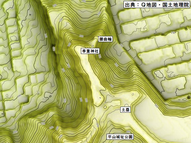| 平山城は源頼朝の挙兵を援けた平山季重が築いた城とされている。平山城址公園駅付近にあった平山季重館と墓所がある宗印禅寺との距離関係と季重神社の存在から平山氏が築いた城と伝えられてきたが、平山氏と平山城を結びつける史料的な裏付けはない。鎌倉時代に居館と詰め城といった概念はなかったと思われるが、平山氏は後世までこの一帯を領有していたので領内の最高所に見張り台を置いたものと思う。 |