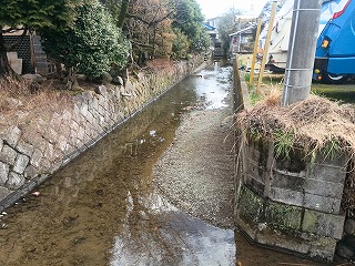 | 江戸時代中期の代官陣屋なので城郭とはとても言えないが、代官を勤めた蓑笠之助の陣屋跡には思いがけず案内板が設置されていた。言うなれば知る人ぞ知るような遺跡であるが、今もこうして案内板によってその功績が伝えられているところをみると、笠之助は村人から愛される代官であったことが偲ばれる。遺構と考えられるのは案内板から東側を流れる水路で、地割からも水堀の痕跡と思われる。陣屋の一画には笠之助が大岡氏にゆかりのある堤村から勧請したと伝わる大庭稲荷神社が建っている。 |
