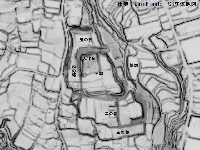 暮れも押し詰まった日で塩山の街は雲海に包まれていた。旧三富村の山城を訪れた帰路に立ち寄ったが郭を囲む空堀がとても見事で櫓台の上から眺める塩山市街と塩の山が美しかった。郭は葡萄畑となり土塁はほとんど削り取られているものの基本的な城の形状をよく残している。二の郭に建つ八幡神社に案内板が設置され浄古寺城の礎石という平たい石が置かれていた。 |