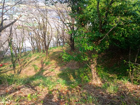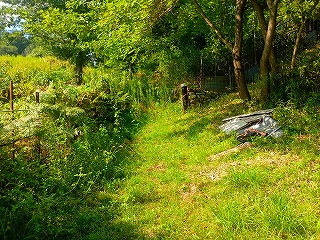 最近の研究成果によって本当の上野城はこれまでの比定地より南西にある丘ということが明らかにされつつある。古い地名や実地調査による遺構の確認でこれまでの常識が覆されたということである。どうしても見ておきたかったので市川本町からここまで歩いてやってきた。丘の上は畑になっていたが、斜面には竪堀が落とされている。腰曲輪とされる平坦地は耕作によるものではないかとも思うが、台地をぐるりと回って東側の斜面を見てみると横堀があった。夏草でかなり埋もれているが、冬場になればその全容を見ることができるだろう。