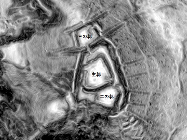 2度目は年末に仲間たちと訪れた。午後の日が傾きかけた時間帯で少し駆け足で見ている。前回はまだフイルム撮影だったが、この日はデジタルカメラでの撮影であり撮影枚数が多めになった。相変わらず立派な土塁には圧倒されたが、2度目ということもあり最初に来たときほどの感動はなかった。麓へ戻ってからは白山城の北と南を守る砦に登ろうかという話になったが、夕刻が迫っていることと、北砦はかなりの危険を伴うために自重して新府城へと移動した。 |