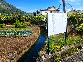 甲斐を統一した武田信虎の居館である川田館は石和温泉駅のすぐ西にある。二宮神社の東に広がる葡萄畑が館跡で案内板も設置されている。地図を見ても長方形の館の形が残り、当時の水堀と思われる用水路が囲んでいる。