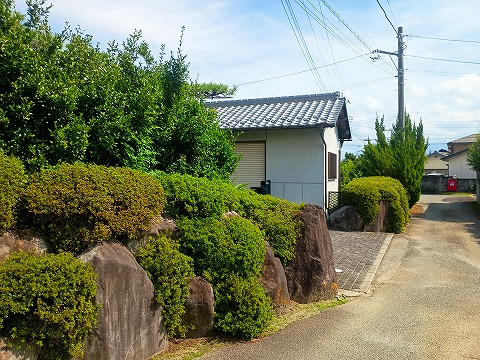 饗場氏の屋敷跡は今も子孫の邸宅となっている。ちょうど当主の人と思われる男性が庭の掃除をしていたので、周囲を歩き回るのは遠慮したが、今も東側には堀跡が残っており、西側にもわずかながら水堀が残されている。 |