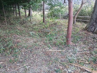 | 大学屋敷と呼ばれる屋敷跡であるが、甲斐の山城と館をはじめとする城郭研究書には出処がなく、新府城跡にある周辺の城館跡を示した案内図にのみ記載がある。そのため屋敷の居住者や歴史についてはまったくわからないが、谷戸を挟んだ正面には長坂氏の屋敷があるので、それに関連した屋敷であったことは間違いないかと思う。 |