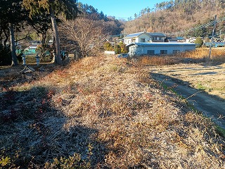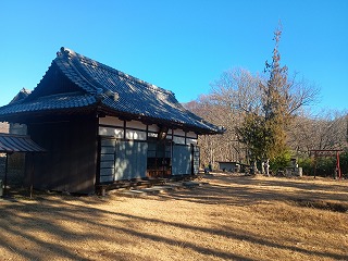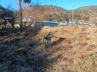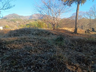 八幡大神社の境内はとても清楚で美しい。その北側に土塁が残り、道路となった堀跡も残されている。屋敷の中心部は神社の北東にあたる農地であるが、神社もまた屋敷の一画を占めていたと考えられる。やや陽射しが傾きかけた中で、誰もいない静かな屋敷跡を散策するのは、まさに至福の時間であり贅沢なひと時である。 |