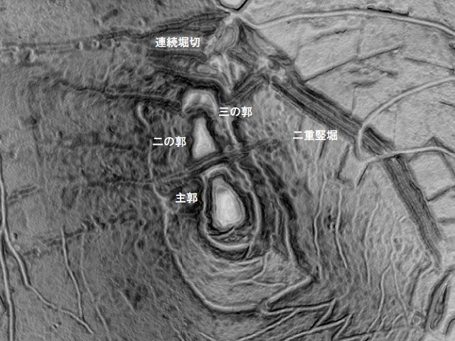 平安時代末期に興った祢津氏の居城だが、祢津上ノ城とは時代の差が感じられ規模がまるで違う。古めかしく簡素な上ノ城に対して下ノ城は戦国時代の卓越した技術と土木量を感じさせる城で、仲良く寄り添うようにどこまでも続く二重竪堀を見ているとさらにその思いが強くなる。下ノ城は戦国時代に祢津元直が築いたとされるが、原型はそれ以前からあったと思われ、時代の流れとともに支配者の変遷により手が加えられていったものと思われる。