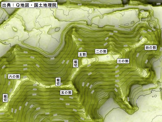 一応は山城という括りになるのだろうが、比高差は40メートル程度であり、麓の医王院からは10分程度で主郭へ着く。率直に言って要害性はあまり感じられないが、北と東は大月川に守られ、南は泥濘だったと思われるので、当時は城を築くだけの条件を兼ね備えていたのだろう。海ノ口城を差し置いてこの地域の中心を担った城だけに、それなりの理由があったはずである。