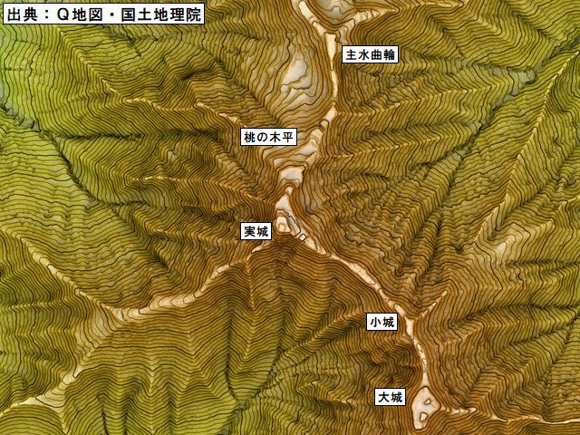 何度か休憩を取りつつも1時間程度で山頂へ着いたが、麓の案内板には山頂まで80分と書かれていたから早い到達だった。最後の岩場を登ると実城が姿を現すが、山そのものを要害としている城なので技巧的な魅力は感じ取れないが荒々しさだけは十分に感じられた。山頂から下界を見下ろすと寒さを忘れるぐらい感動する。霧の立ち込める尾根と雨に煙る六日町の街並みはとても幻想的で、鮮やかな色合いは微塵もなくモノクロームの風景が広がっている。もう一度行けと言われれば躊躇するが、坂戸城の厳かな雰囲気は今でも強く印象に残っている。坂戸城は自分にとって2000城達成の記念の城ともなった。 |