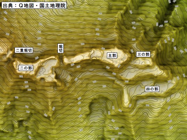浦佐城は浦佐駅の目の前と言っていいほどの距離だった。登山道入口まで歩いて10分ほどで着くのが旅先では何よりも嬉しい。そこからは特に急な登りや危険な場所もなく20分ぐらいで主郭に着いたが、山城を歩くにはまだ少し早いようで日当たりの良い場所は背の高い草に埋もれていた。麓にある案内板と城跡に設置されている案内標識とで郭の名称に違いが見られるので、麓の案内板に従って表記しているが、四の郭はまだ夏の装いといった感じだった。石垣こそないが垂直に近い切岸がたいへん強烈である。多少の傾斜なら這い上がってしまうが、浦佐城の切岸はさすがの自分でもとても登れない傾斜だった。二重堀切は草に埋もれていたが靴底でその地形を確かめてみた。主郭から遠くを眺めると2年前に登った大崎城や六万騎城が手に取るようだった。その向こうには雨と雪の中で制覇した坂戸城が見えた。 |