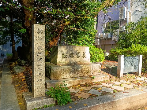 最初に訪ねたのは当然のように長岡城である。新幹線から降り立てばそこはもう長岡城なのだが、これだけ徹底的に破壊された近世城郭も珍しい。明治維新まで存続した城郭の中でも石垣と多数の櫓を備えた城で、今では跡形もないのは沼津城、尼崎城、そして長岡城ぐらいではないだろうか。駅前のロータリーに本丸跡の石碑が建ち、申し訳程度の石垣のモニュメントが造られている。西へ歩くと城内稲荷があり、そこに長岡城の石碑と二ノ丸跡の碑が建っていた。はっきり言って城を示すものはこれだけである。