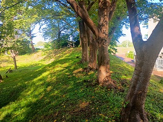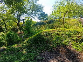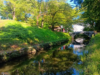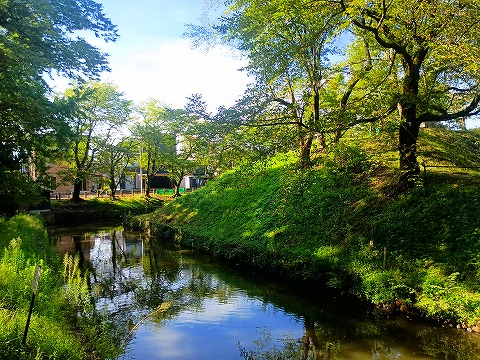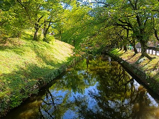 しばらく土塁に上がったり水堀の端を散策するなどしていたが、いつまでも見ていたい衝動に駆られるような城である。蝉時雨の中をゆっくりとした時間を過ごしていたが、あまり長く時間を取るわけにもいかず、後ろ髪を引かれる思いで蔵王堂城を後にした。 |