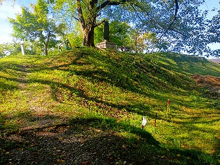 好天に恵まれたおかげで蔵王堂城の美しさを存分に堪能することができたが、特に土塁は間近で見るとその規模に驚かされる。水堀に沿って残る土塁は小山のように大きく、毘沙門堂などが建ち並ぶ背後に残る土塁もまた見事なものだった。土塁の上にはわずかながら石積が見られるが、これが当時の遺構なのかはわからない。