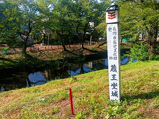 長岡への旅の目的は蔵王堂城を訪ねることだった。長岡城は遺構が皆無のため10分もあれば見尽くしてしまう。蔵王堂城も大部分が失われてしまい、残るのは主郭のごく一部だが、モノクロで紹介されていた水堀と土塁の美しさに魅せられていたのが理由である。