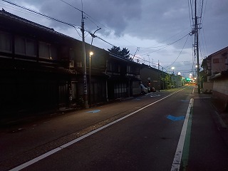 漆黒の闇に包まれた小松駅を後にして小松城を目指したが、途中の正覚寺にある小松城の北門を見た。この時もまだ暗かったが、鰻橋御門を見るために立ち寄った街外れの来生寺に着いたときには白々と夜が明けていた。小松城の格式を示すような見事な長屋門である。城門には様々な形式があるが、薬医門や高麗門より長屋門が好きな自分にとって嬉しい遺構だった。
