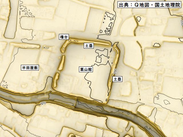 戦国時代は葛山氏元が武田氏と姻戚関係を結び、北条氏と武田氏との間に挟まれながらも自家の保全に努めたが、今川氏の滅亡により武田氏の駿河侵攻に味方した。後に氏元は北条氏への内通を疑われて処刑され、武田信玄の六男信貞が葛山氏の名跡を継いだ。天正10年(1582)に武田氏が滅亡すると信貞も甲斐善光寺で自刃し葛山氏は滅んだ。 |