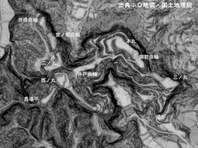 天文5年(1536)の花倉の乱で福島氏は没落し小笠原氏が城代となり、今川氏が遠江を支配する上での有力拠点となった。今川氏が滅んだ後は徳川家康が高天神城を接収したが、天正2年(1574)に武田勝頼の猛攻によって落城し、降伏した小笠原信興がそのまま城将を務めた。翌年の長篠の戦いで惨敗を喫した武田氏は徐々に守勢に回ることとなり、高天神城の奪還を目論む家康は横須賀城を築き、さらに小笠山砦をはじめとする6つの砦の構築で万全の包囲網を整えた。後詰もままならない状況に追い込まれた高天神城は、ついに天正9年(1581)に降伏を申し出るが、織田信長の厳命で降伏は受け入れられず、城将の岡部元信らは城外へ打って出たが、ほとんど自殺に等しい戦いとなり高天神城は落城し、以後は使用されることなく廃城となった。 |