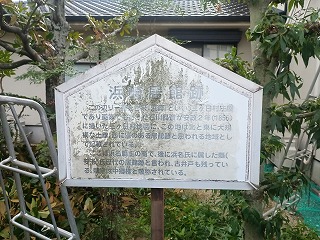 | 浜崎館は縣氏が室町時代に構えた屋敷とされる。縣は安形とも表記され、戦国時代の安形氏は佐久城の浜名氏に仕えていたが、浜崎館の縣氏についての動向はよくわからない。今川氏とともに浜名氏が滅んだ後は徳川家康の臣下となり、県但馬守正明、出雲守正綱、刑部左衛門正秀らが寛永年間(1624〜44)まで当地で居住していたという。 |
