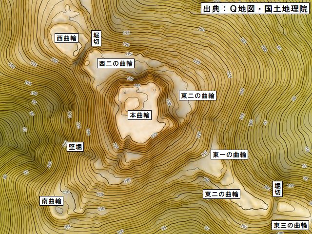 前掲した内容がこれまで千頭峯城の歴史として語られてきたが、南北朝時代の千頭峯城はここではなく、さらに東の山塊を利した尉ヶ峰城を指すという。千頭峯城に残る遺構は明らかに戦国時代のものであり、発掘調査で得られた遺物からも16世紀の城と考えられており、仮に南北朝時代に山城が築かれたとしても、あくまでも砦程度の規模しか持たない山城であり、現在の千頭峯城は今川氏が没落し遠江に徳川家康が侵攻した時代の山城と推定される。 |