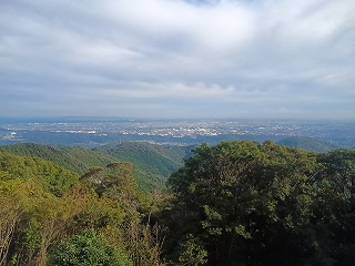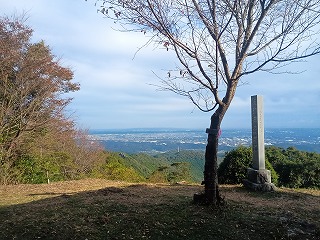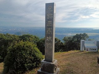 疲労もあるのでとりあえず主郭だけ見ようと思い、西へ再び登り始める。巨岩が転がる中をすり抜けると二の郭へ至り、そこから少し登ると一気に視界が広がる主郭へと着いた。いっぺんに疲労が抜けてしまうほど爽快な眺めである。標高466メートルの低山だが、遠くには浜名湖が見渡すことができて眺望はすこぶる良い。疲れを癒すため休んでいるところにスズメバチの不気味な羽音が聞こえた。まるでカブトムシと見紛うような大きなスズメバチだったが、威嚇することもなく飛び去ったので来春の住処を探す女王蜂だろう。