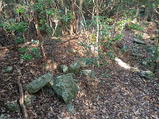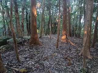 東一の曲輪は削平もきちんとはされておらず、あまり手の込んだ造りではない。堀切を隔てた東二の郭へ向かった頃にはさらに暗くなっていたが、東端の堀切だけはしっかりと拝んだ。これで三岳城の全容を捉えたことになるが、南北朝時代から戦国時代まで使用された歴戦の城という雰囲気を濃厚に残す山城だった。訪れることができて素直に嬉しく思う。 |