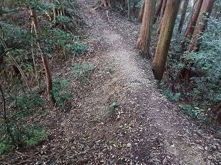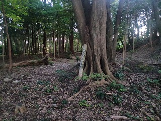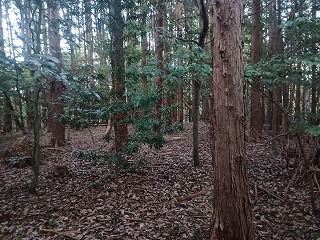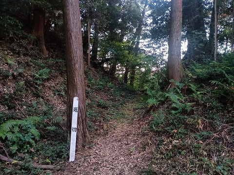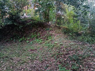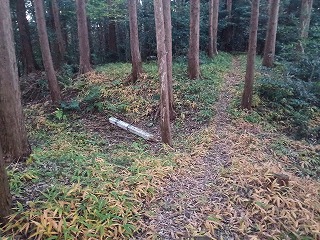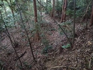 かろうじて木に掴まりつつ歩くが、時々蜘蛛の巣が顔にかかって難渋した。結局はその先の堀切を見たところで打ち切りとなり、支尾根に残る遺構までは観察することができなかった。
