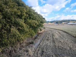 湿地帯の浮かぶ島々を利用して築かれた平城だが、、堀はすべて埋め立てられ南側の一部が水田となって残るに過ぎない。居館部と北曲輪も大部分が宅地化されてしまっているが、北曲輪には民家の庭先などに土塁が点在しており、これらを探し歩くのは楽しい時間となった。堀切は道路となっているが、その形はかろうじて残されている。