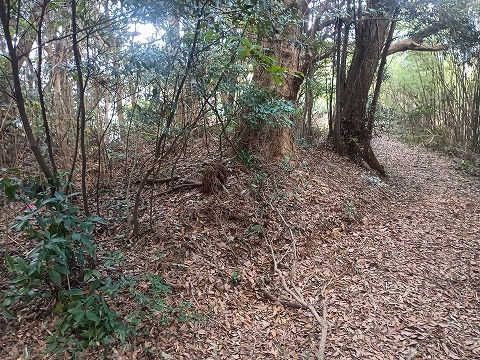 | 馬伏塚城から呑吉山砦へ登り、そのまま尾根を歩いていくと寺屋敷がある。細長い尾根で曲輪の形成はされておらず、屋敷と呼称されているものの小屋掛けができるようなスペースもない狭隘な地形である。西麓には大きな工場があるが、この建設のときに尾根が削り取られた可能性もあり、過去に遺構が存在したのかどうかも確認ができていない。 |