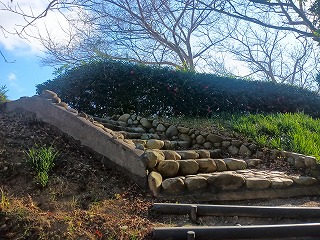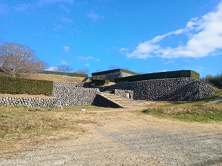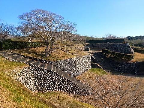 再び横須賀城へと戻り、三日月池から本丸へと登ったが、途中には往時の遺構と思われる石垣もあり目を楽しませてくれた。本丸は幾重にも虎口が配置される複雑な構成である。天守台はやや変わった造りであり、ここに三重四層の天守があったと思うと、否が応でも気持ちが高鳴る。本丸から西ノ丸を経て北ノ丸へと歩いてみたが、ここも広々とした曲輪であり、横須賀城が高天神城攻めの駐屯地を兼ねていたことがよくわかる縄張りである。本丸の東側が崩落して痛々しいが早く往時の姿に戻ることを願いたい。松尾山にも建物跡を示す一画があるが、どのような建物があったのかは想像するしかない。