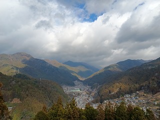 山頂からの風景は絶景であり、連なる山々の向こうはもう信濃である。南の空は青々としていたが、北は厚い雲がたなびき、風に乗って小雪が舞い散る天候だった。山城で舞う雪はとても美しく、秘境の地に立つ自分を小説の主人公にしてくれるようだった。