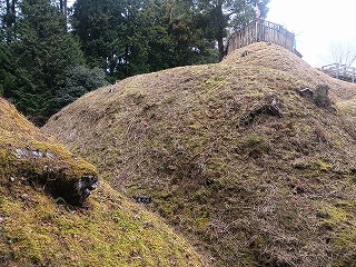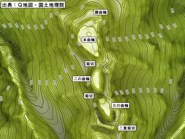 永禄12年(1569)に信濃から出兵した遠山土佐守に攻められた落城した高根城は、武田氏の遠江侵攻の拠点として大規模な改修が施されたと考えられている。天正3年(1575)の長篠の戦いで大敗した武田勝頼は遠江から兵を撤収し、武田氏の残存勢力を遠江から一掃した徳川家康は高根城には在番を置かなかった様子であり、そのまま廃城になったと思われる。 |