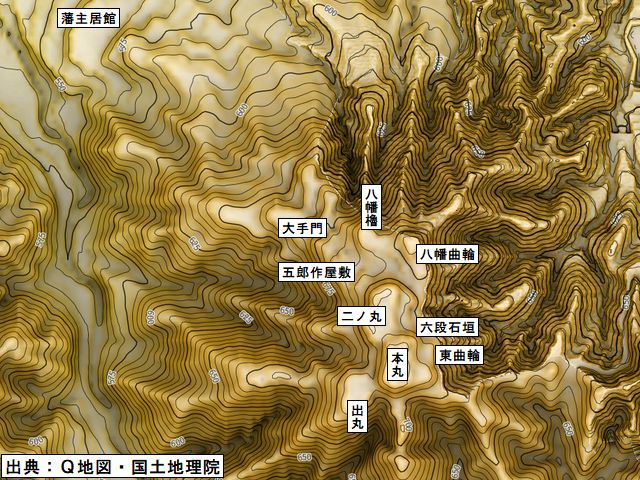 天正10年(1582)に武田勝頼が滅亡し、時を経ずして信長が本能寺の変で死ぬと岩村城は羽柴秀吉に属した森長可が接収し、長久手の戦いで長可が討死した後は弟の忠政が受け継ぎ、城代を務めた各務元正によって大改修が施されたという。忠政は信濃海津城へ移封となり田丸直昌が城主となるが、慶長5年(1600)の関ヶ原の戦いで西軍に身を投じたために改易となり、戦後は松平家乗が城主となり城の中心は麓へと移された。その後は譜代の丹羽氏と松平氏が岩村城主となり明治維新まで存続している。 |