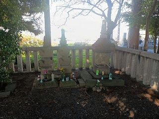 輝政の陣所は御所野と呼ばれた中山道の南外れにあり、大部分が墓地となっている。関ヶ原の古戦場は最近になって新たに武将たちの陣所跡に案内板が設置されているが、輝政の陣所は昔から石碑が建てられていた。墓地には鎌倉公方足利基氏の子春王と安王の墓が並び岐阜県の文化財指定を受けている。享年わずか13歳と11歳の少年だが、見事な辞世の句を残していると感心させられた。 |